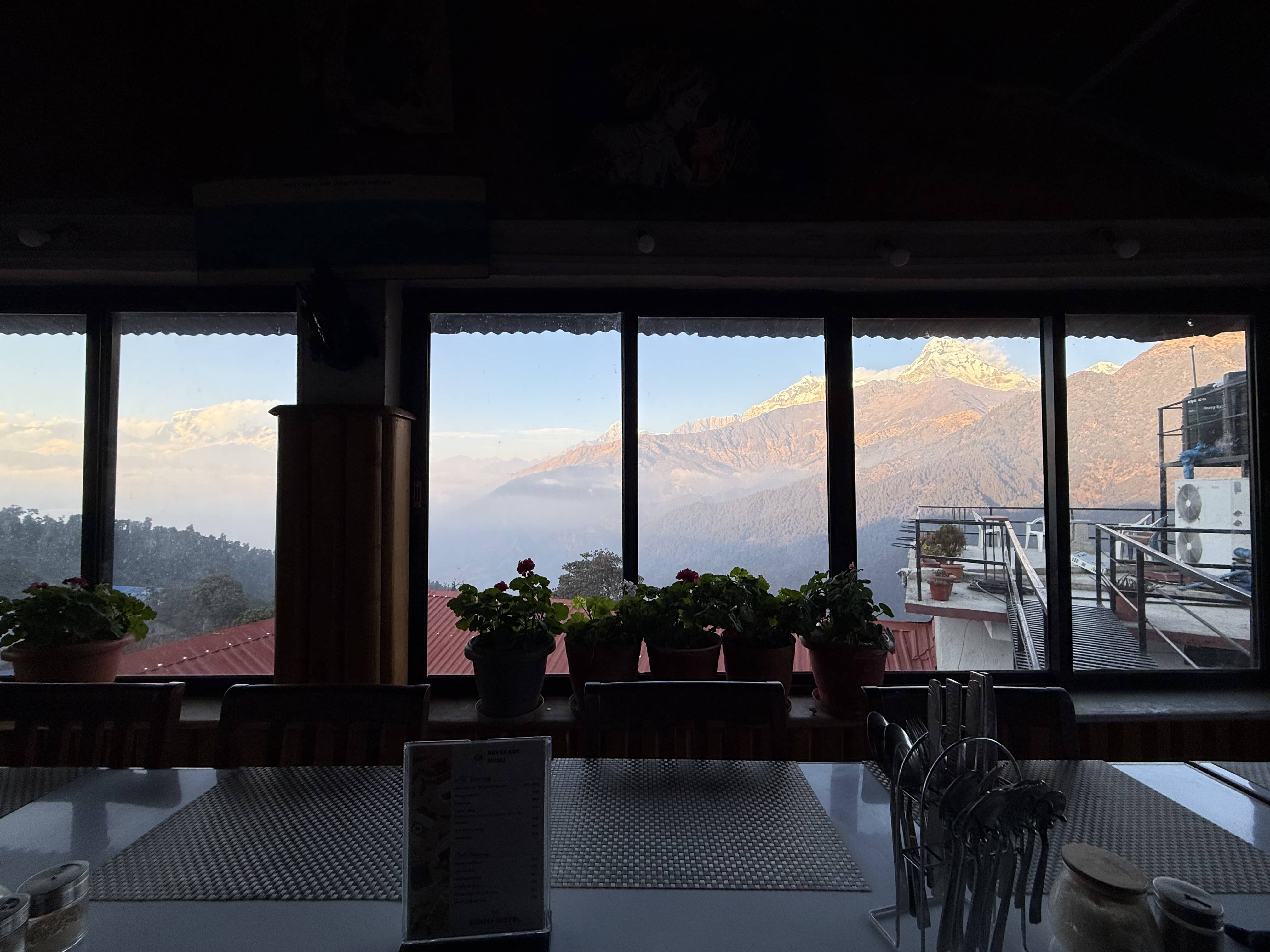 早上起来,我们就在 Tadapani 看到了壮丽的安纳普尔纳南峰和鱼尾峰的日照金山: